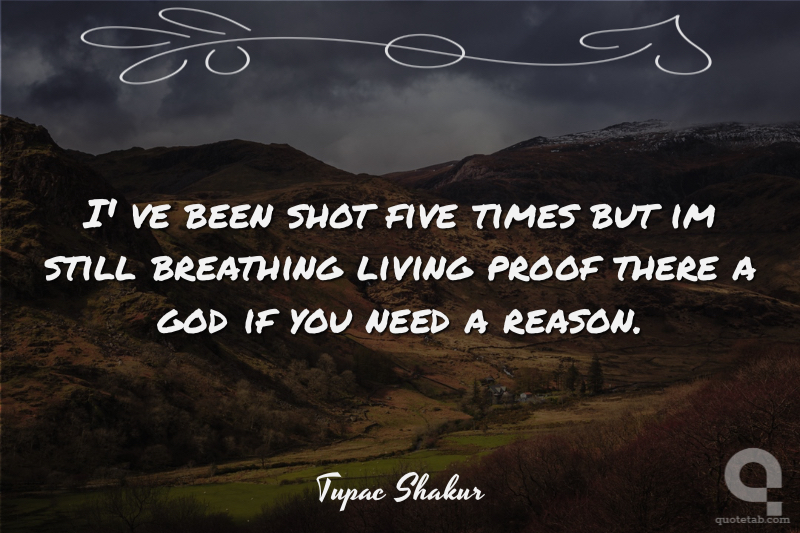 I' ve been shot five times but im still breathing living proof there a god if you need a reason.