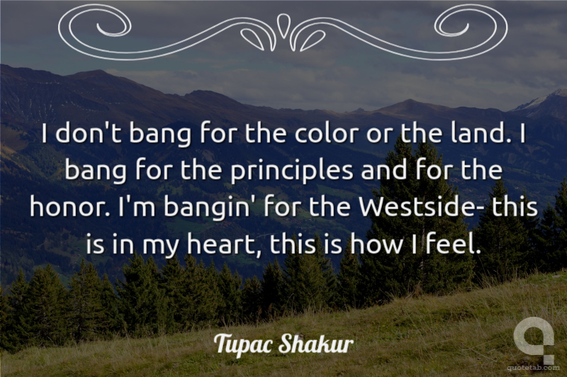 I don't bang for the color or the land. I bang for the principles and for the honor. I'm bangin' for the Westside- this is in my heart, this is how I feel.