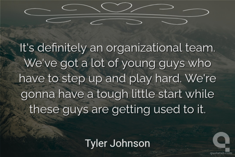 It's definitely an organizational team. We've got a lot of young guys who have to step up and play hard. We're gonna have a tough little start while these guys are getting used to it.