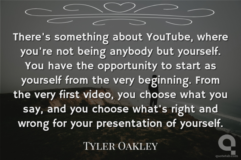 There's something about YouTube, where you're not being anybody but yourself. You have the opportunity to start as yourself from the very beginning. From the very first video, you choose what you say, and you choose what's right and wrong for your presentation of yourself.