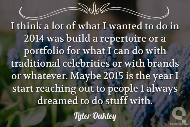 I think a lot of what I wanted to do in 2014 was build a repertoire or a portfolio for what I can do with traditional celebrities or with brands or whatever. Maybe 2015 is the year I start reaching out to people I always dreamed to do stuff with.