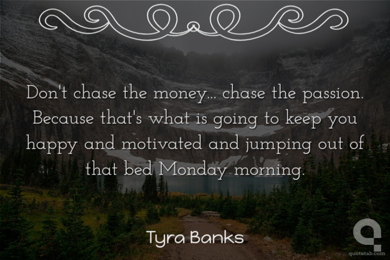 Don't chase the money... chase the passion. Because that's what is going to keep you happy and motivated and jumping out of that bed Monday morning.