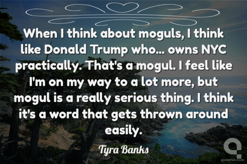 When I think about moguls, I think like Donald Trump who... owns NYC practically. That's a mogul. I feel like I'm on my way to a lot more, but mogul is a really serious thing. I think it's a word that gets thrown around easily.