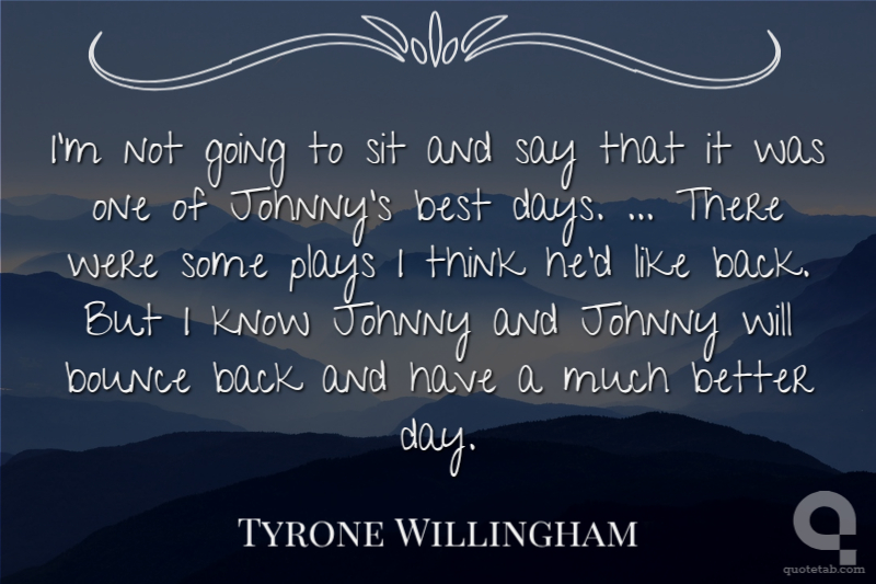 I'm not going to sit and say that it was one of Johnny's best days. ... There were some plays I think he'd like back. But I know Johnny and Johnny will bounce back and have a much better day.