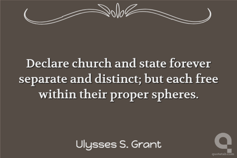 Leave the matter of religion to the family altar, the church, and the private school, supported entirely by private contributions. Keep the church and state forever separate.