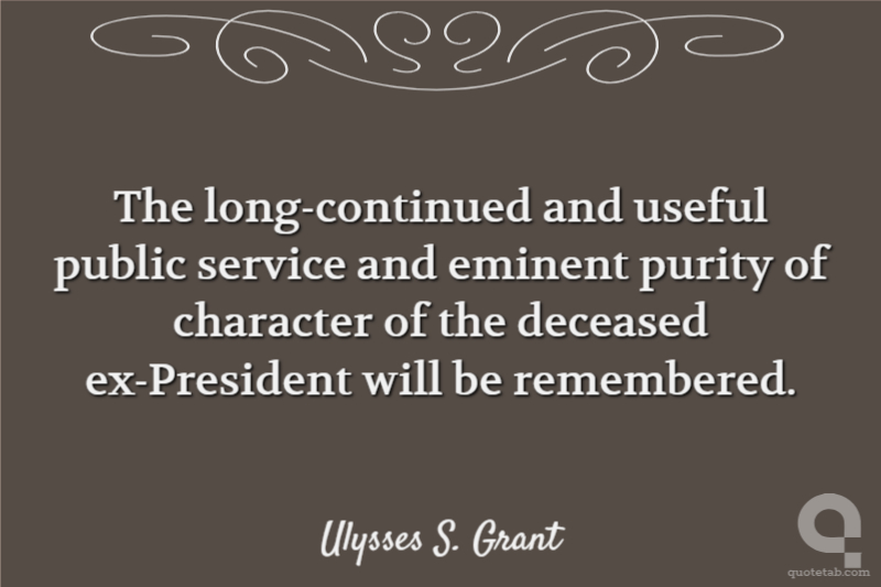 The long-continued and useful public service and eminent purity of character of the deceased ex-President will be remembered.