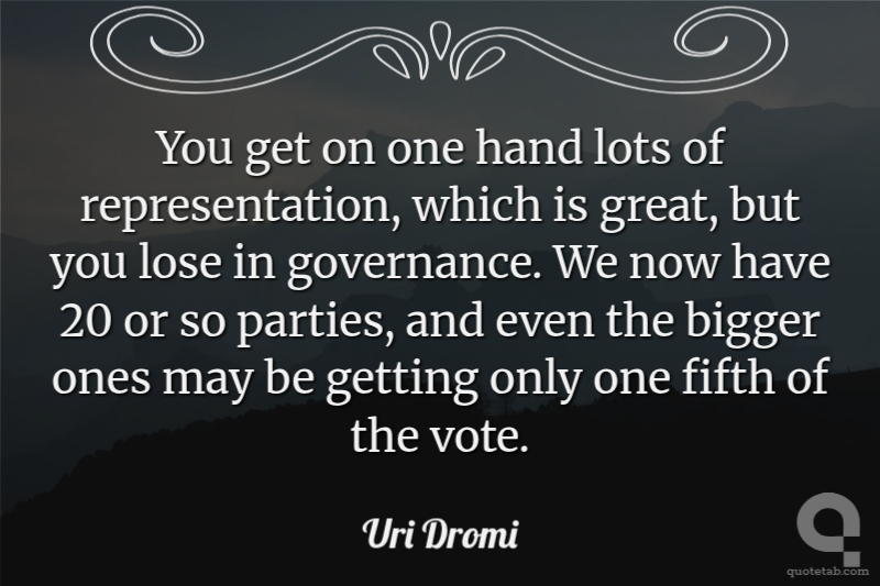 You get on one hand lots of representation, which is great, but you lose in governance. We now have 20 or so parties, and even the bigger ones may be getting only one fifth of the vote.