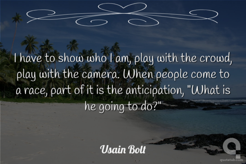 I have to show who I am, play with the crowd, play with the camera. When people come to a race, part of it is the anticipation, "What is he going to do?"
