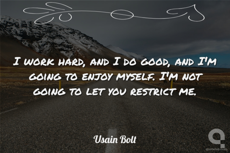 I work hard, and I do good, and I'm going to enjoy myself. I'm not going to let you restrict me.