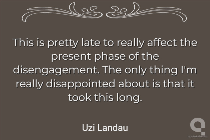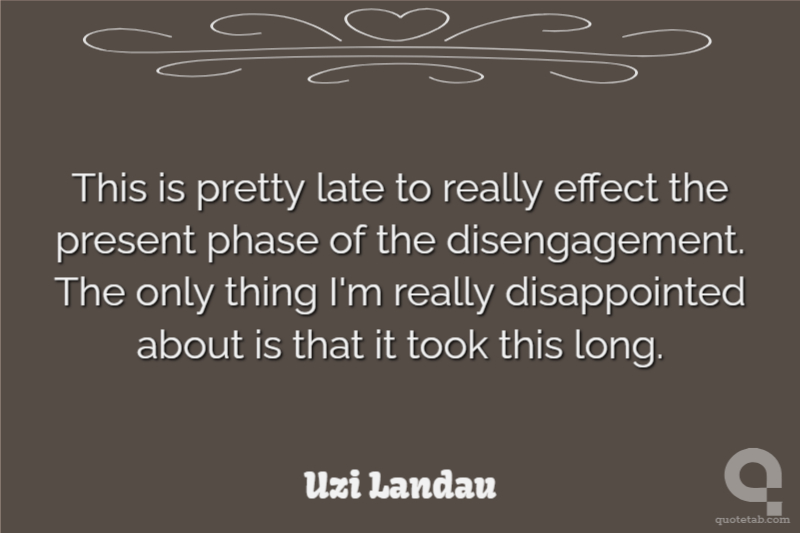 This is pretty late to really affect the present phase of the disengagement. The only thing I'm really disappointed about is that it took this long.