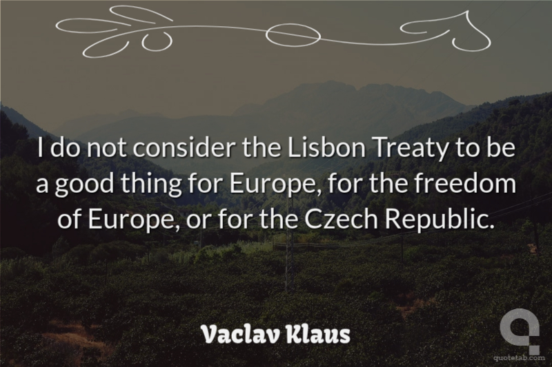 I do not consider the Lisbon Treaty to be a good thing for Europe, for the freedom of Europe, or for the Czech Republic.