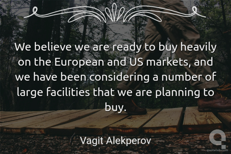 We believe we are ready to buy heavily on the European and US markets, and we have been considering a number of large facilities that we are planning to buy.