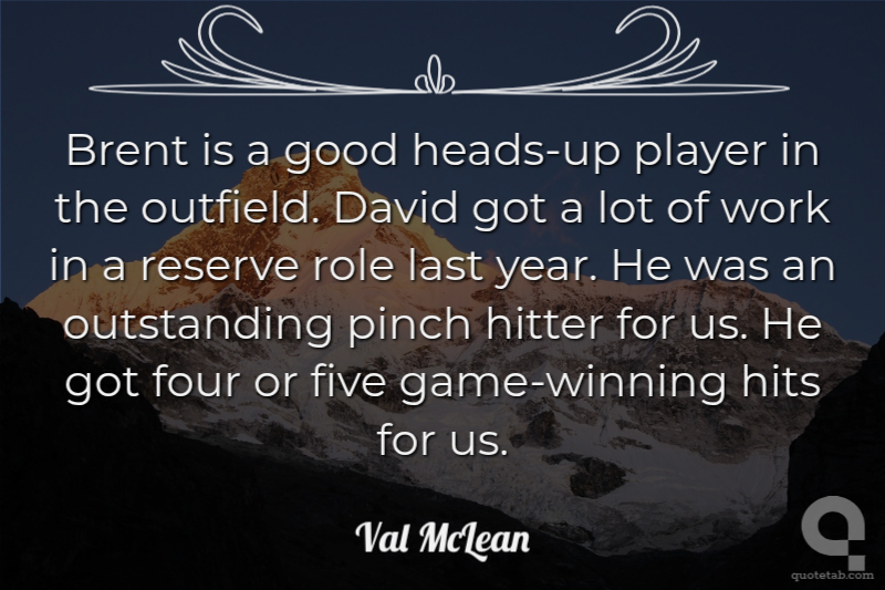 Brent is a good heads-up player in the outfield. David got a lot of work in a reserve role last year. He was an outstanding pinch hitter for us. He got four or five game-winning hits for us.