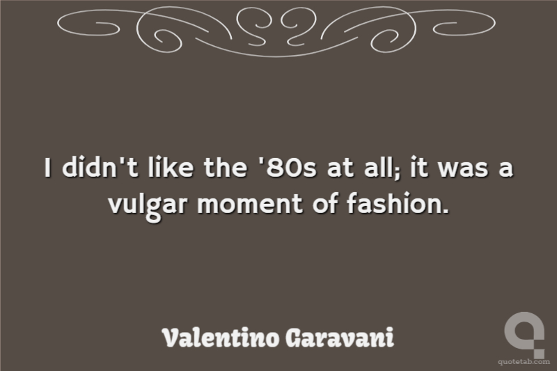I didn't like the '80s at all; it was a vulgar moment of fashion.