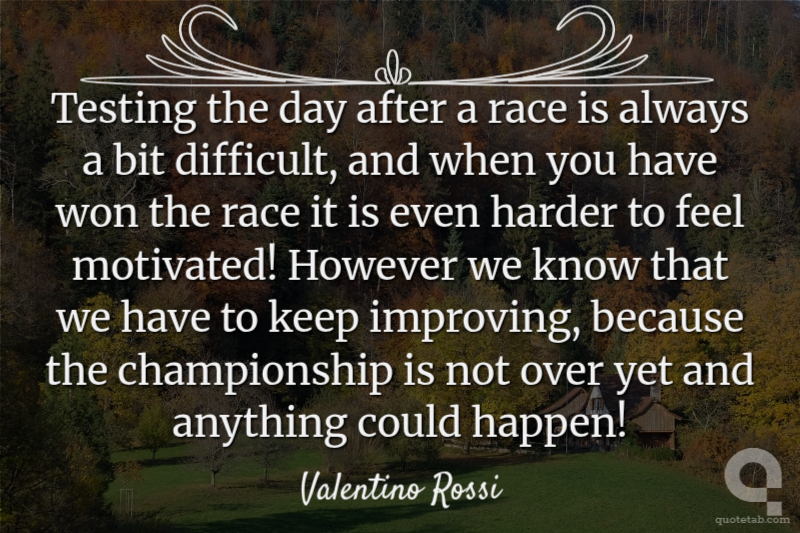 I think the secret is to understand that you still want to be part of the game. To do so, you have to forget all the victories you've managed to get in the previous years and have a great humility. You also need to realise that, if you want to go on, you have to work hard. If you dwell too much on your past successes and say "well, I have won nine world titles and more than 100 races", you'd rather stay home.
