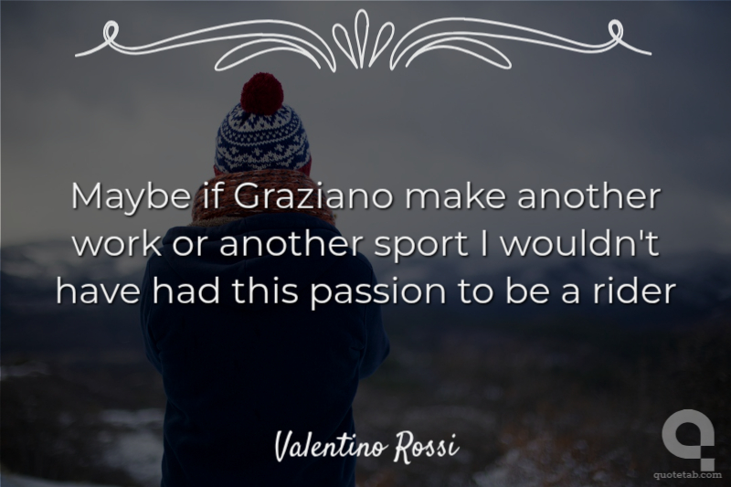 Maybe if Graziano make another work or another sport I wouldn't have had this passion to be a rider