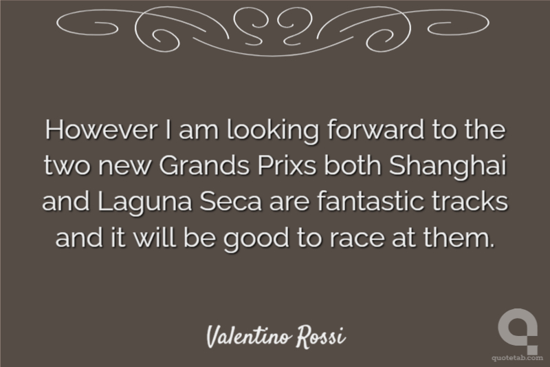 However I am looking forward to the two new Grands Prixs both Shanghai and Laguna Seca are fantastic tracks and it will be good to race at them.