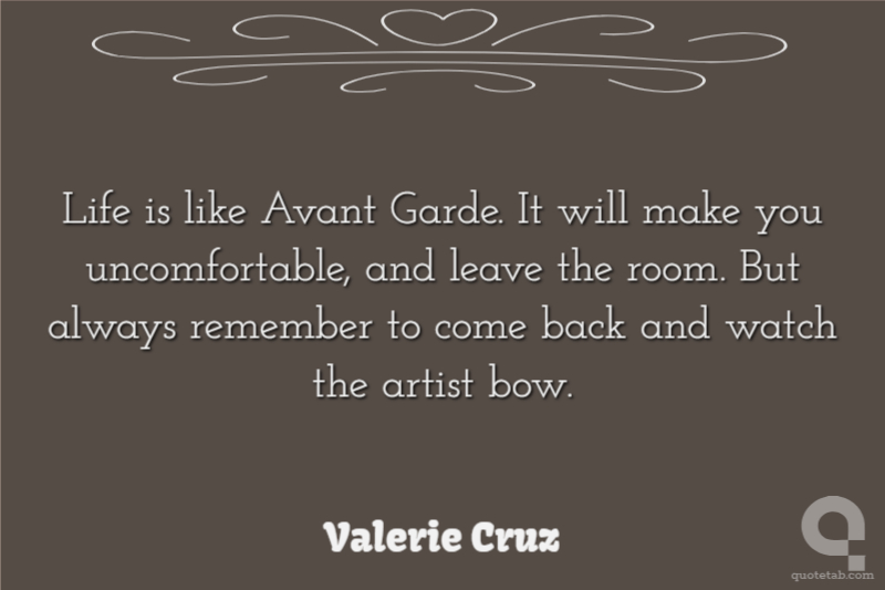 Life is like Avant Garde. It will make you uncomfortable, and leave the room. But always remember to come back and watch the artist bow.