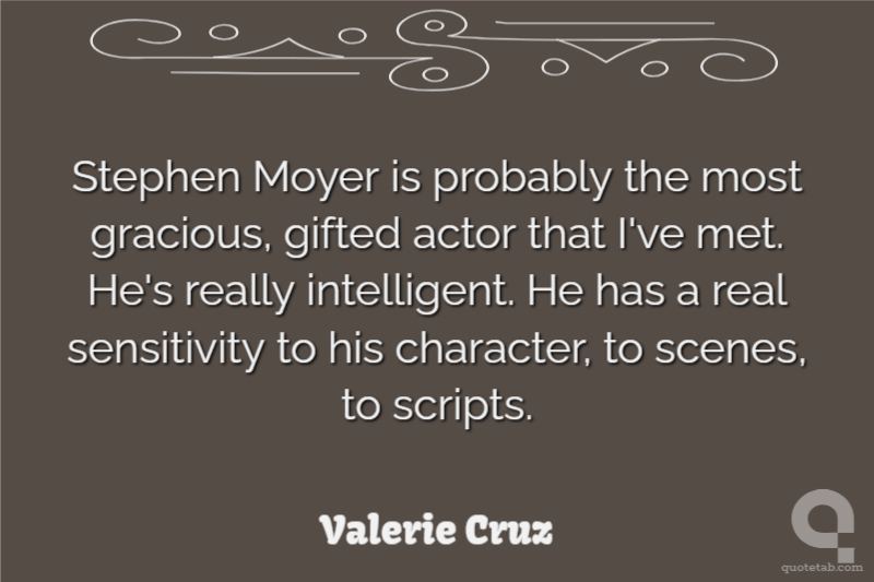 Stephen Moyer is probably the most gracious, gifted actor that Ive met. Hes really intelligent. He has a real sensitivity to his character, to scenes, to scripts.