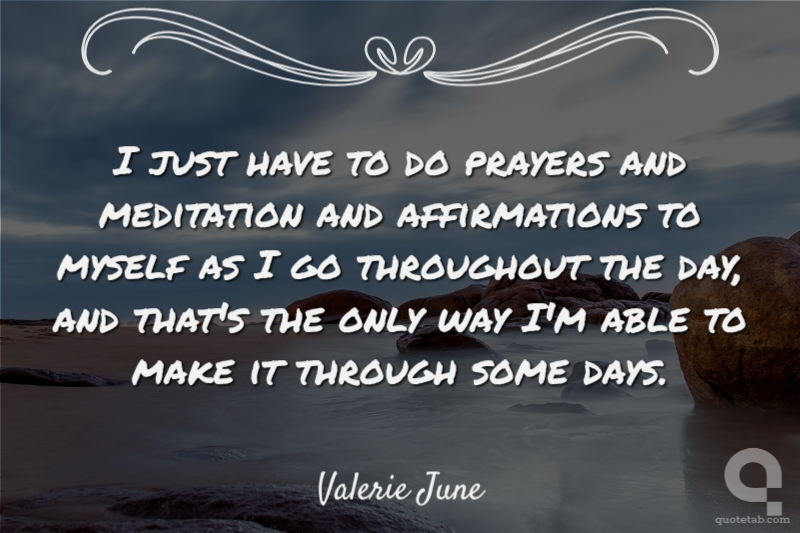 I just have to do prayers and meditation and affirmations to myself as I go throughout the day, and that's the only way I'm able to make it through some days.