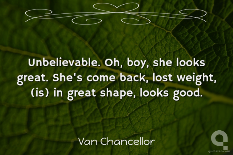 Unbelievable. Oh, boy, she looks great. She's come back, lost weight, (is) in great shape, looks good.