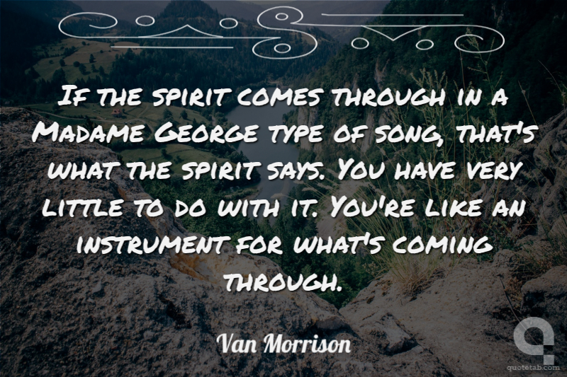 If the spirit comes through in a Madame George type of song, that's what the spirit says. You have very little to do with it. You're like an instrument for what's coming through.