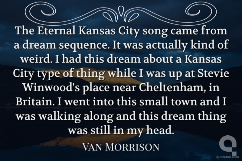 The Eternal Kansas City song came from a dream sequence. It was actually kind of weird. I had this dream about a Kansas City type of thing while I was up at Stevie Winwood's place near Cheltenham, in Britain. I went into this small town and I was walking along and this dream thing was still in my head.