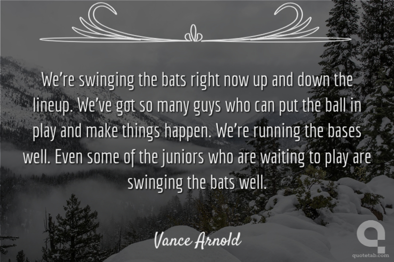 We're swinging the bats right now up and down the lineup. We've got so many guys who can put the ball in play and make things happen. We're running the bases well. Even some of the juniors who are waiting to play are swinging the bats well.