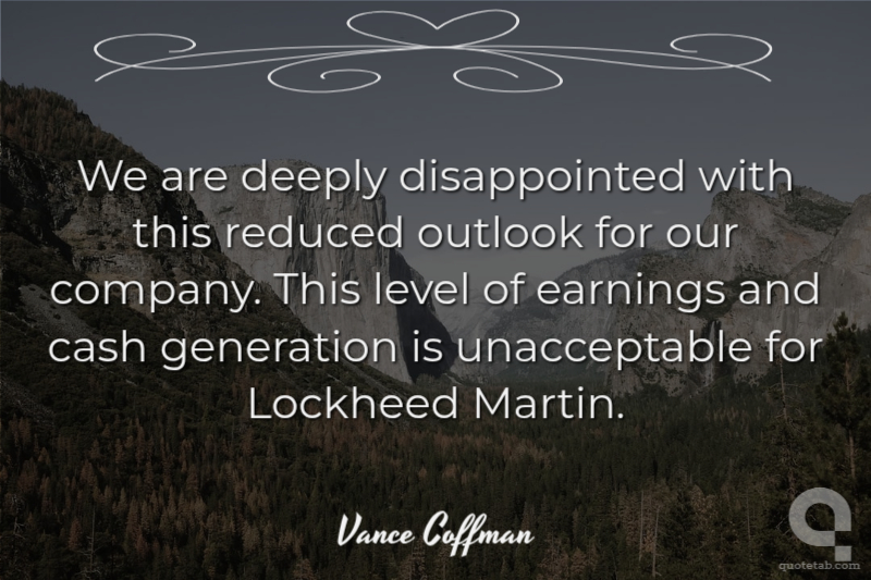 We are deeply disappointed with this reduced outlook for our company. This level of earnings and cash generation is unacceptable for Lockheed Martin.