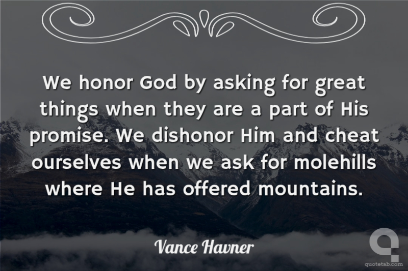 We honor God by asking for great things when they are a part of His promise. We dishonor Him and cheat ourselves when we ask for molehills where He has offered mountains.