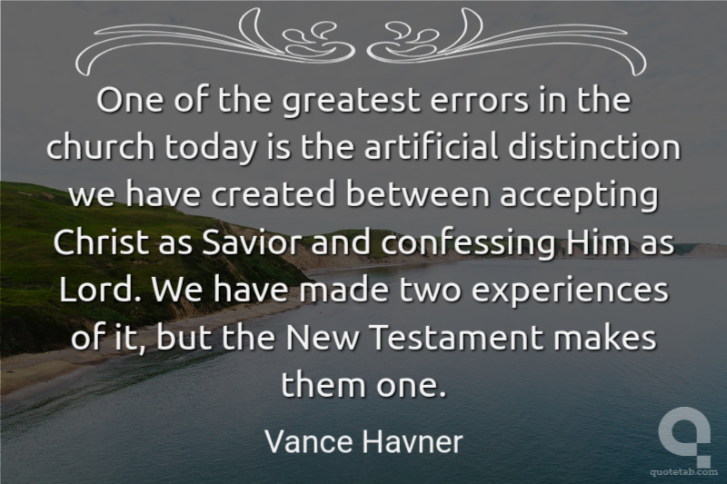 One of the greatest errors in the church today is the artificial distinction we have created between accepting Christ as Savior and confessing Him as Lord. We have made two experiences of it, but the New Testament makes them one.