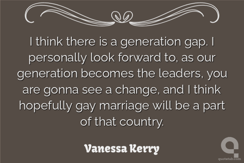 I think there is a generation gap. I personally look forward to, as our generation becomes the leaders, you are gonna see a change, and I think hopefully gay marriage will be a part of that country.