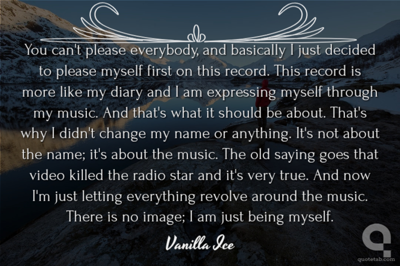You can't please everybody, and basically I just decided to please myself first on this record. This record is more like my diary and I am expressing myself through my music. And that's what it should be about. That's why I didn't change my name or anything. It's not about the name; it's about the music. The old saying goes that video killed the radio star and it's very true. And now I'm just letting everything revolve around the music. There is no image; I am just being myself.