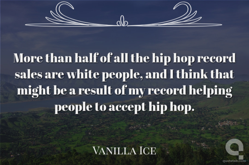 More than half of all the hip hop record sales are white people, and I think that might be a result of my record helping people to accept hip hop.