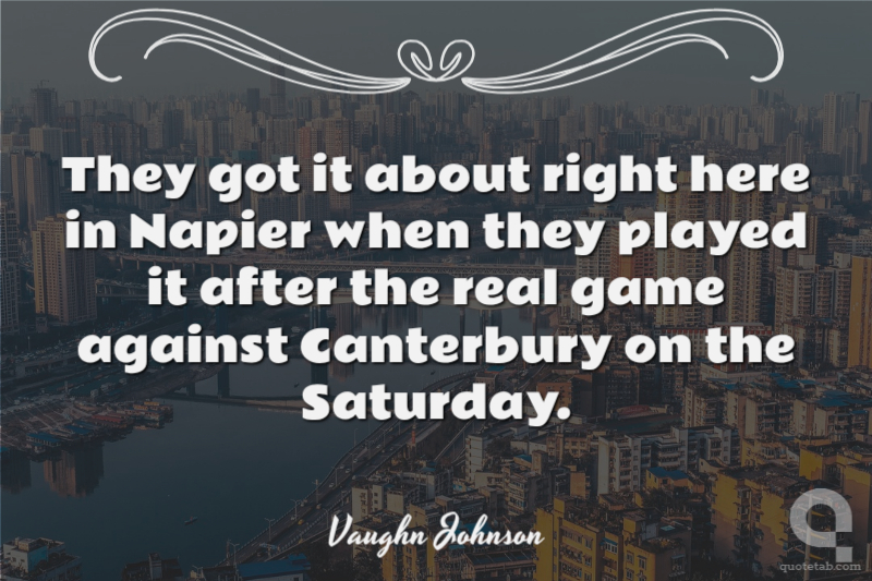 They got it about right here in Napier when they played it after the real game against Canterbury on the Saturday.