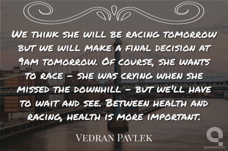 We think she will be racing tomorrow but we will make a final decision at 9am tomorrow. Of course, she wants to race - she was crying when she missed the downhill - but we'll have to wait and see. Between health and racing, health is more important.