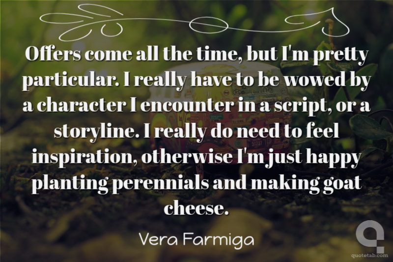 Offers come all the time, but I'm pretty particular. I really have to be wowed by a character I encounter in a script, or a storyline. I really do need to feel inspiration, otherwise I'm just happy planting perennials and making goat cheese.