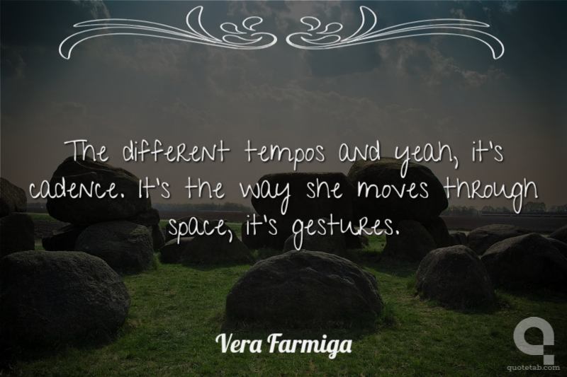 The different tempos and yeah, it's cadence. It's the way she moves through space, it's gestures.