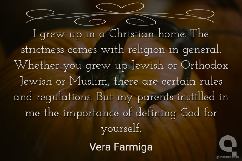 I grew up in a Christian home. The strictness comes with religion in general. Whether you grew up Jewish or Orthodox Jewish or Muslim, there are certain rules and regulations. But my parents instilled in me the importance of defining God for yourself.