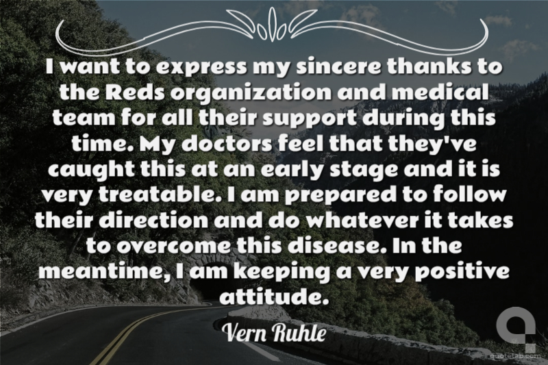 I want to express my sincere thanks to the Reds organization and medical team for all their support during this time. My doctors feel that they've caught this at an early stage and it is very treatable. I am prepared to follow their direction and do whatever it takes to overcome this disease. In the meantime, I am keeping a very positive attitude.