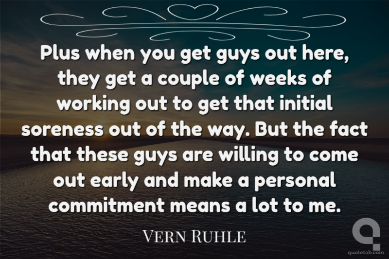 Plus when you get guys out here, they get a couple of weeks of working out to get that initial soreness out of the way. But the fact that these guys are willing to come out early and make a personal commitment means a lot to me.