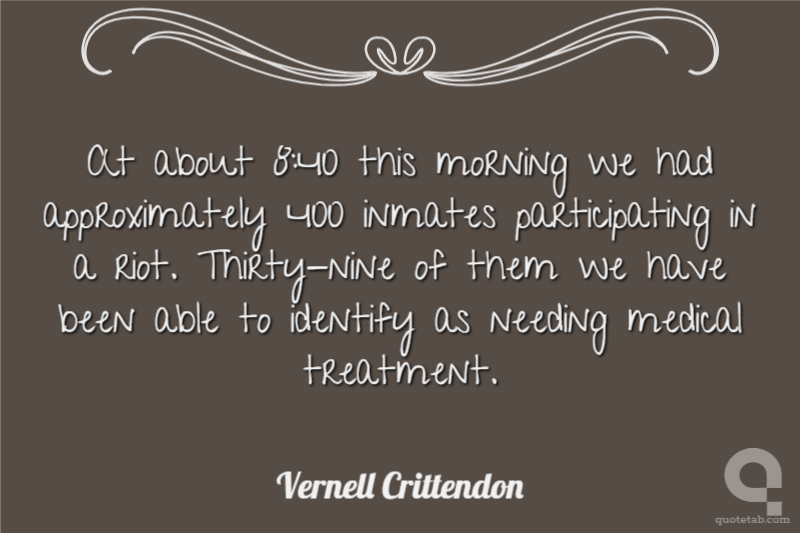 At about 8:40 this morning we had approximately 400 inmates participating in a riot. Thirty-nine of them we have been able to identify as needing medical treatment.
