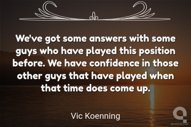 We've got some answers with some guys who have played this position before. We have confidence in those other guys that have played when that time does come up.