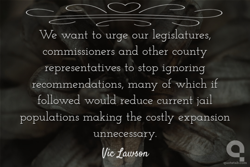 We want to urge our legislatures, commissioners and other county representatives to stop ignoring recommendations, many of which if followed would reduce current jail populations making the costly expansion unnecessary.