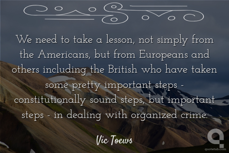 We need to take a lesson, not simply from the Americans, but from Europeans and others including the British who have taken some pretty important steps - constitutionally sound steps, but important steps - in dealing with organized crime.