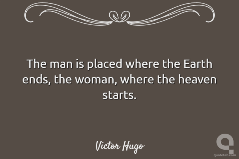 The man is placed where the Earth ends, the woman, where the heaven starts.