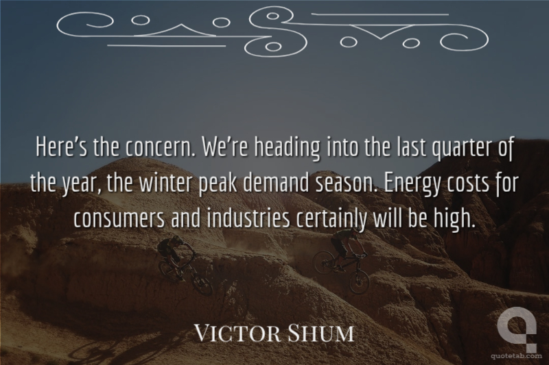Here's the concern. We're heading into the last quarter of the year, the winter peak demand season. Energy costs for consumers and industries certainly will be high.