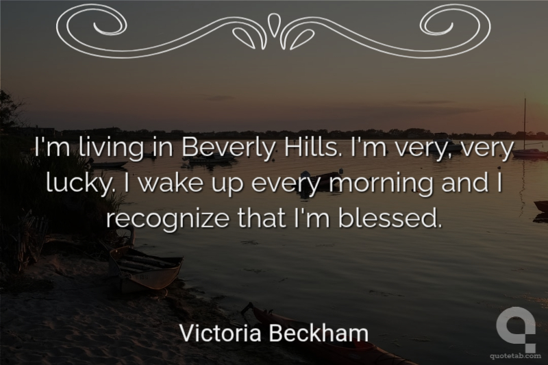 I'm living in Beverly Hills. I'm very, very lucky. I wake up every morning and I recognize that I'm blessed.