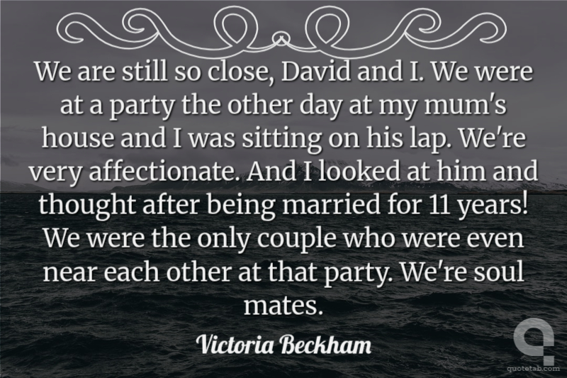 We are still so close, David and I. We were at a party the other day at my mum's house and I was sitting on his lap. We're very affectionate. And I looked at him and thought after being married for 11 years! We were the only couple who were even near each other at that party. We're soul mates.