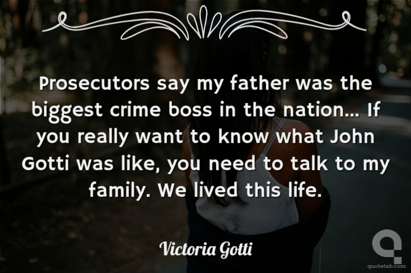 Prosecutors say my father was the biggest crime boss in the nation... If you really want to know what John Gotti was like, you need to talk to my family. We lived this life.